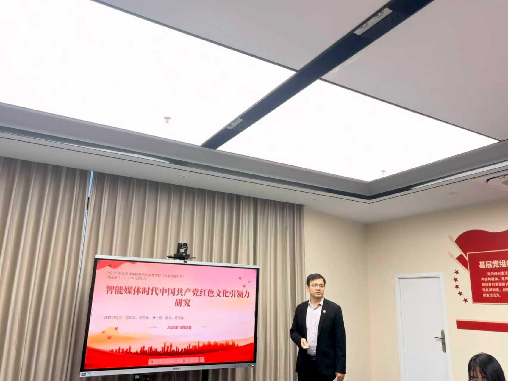 2025年12月22日下午3点至6点,马克思主义学院在1号楼401会议室举办了一场以“专家指导强新质,教研相长促发展”为主题的开题报告会与集体备课会。本次会议邀请了广州软件学院马克思主义学院院长丁邦友教授、广州城建职业学院马克思主义学院院长柏元海教授、广州南方学院马克思主义学院张由菊教授为校外指导专家,邀请了马克思主义学院院长刘社欣教授、黄禧祯教授为校内指导专家,对我院近期立项的1个省级项目和5个校级项目把脉定向,以推动学术创新与成果转化,提升思想政治理论课教学水平。会议由副院长杨尚昆教授主持。