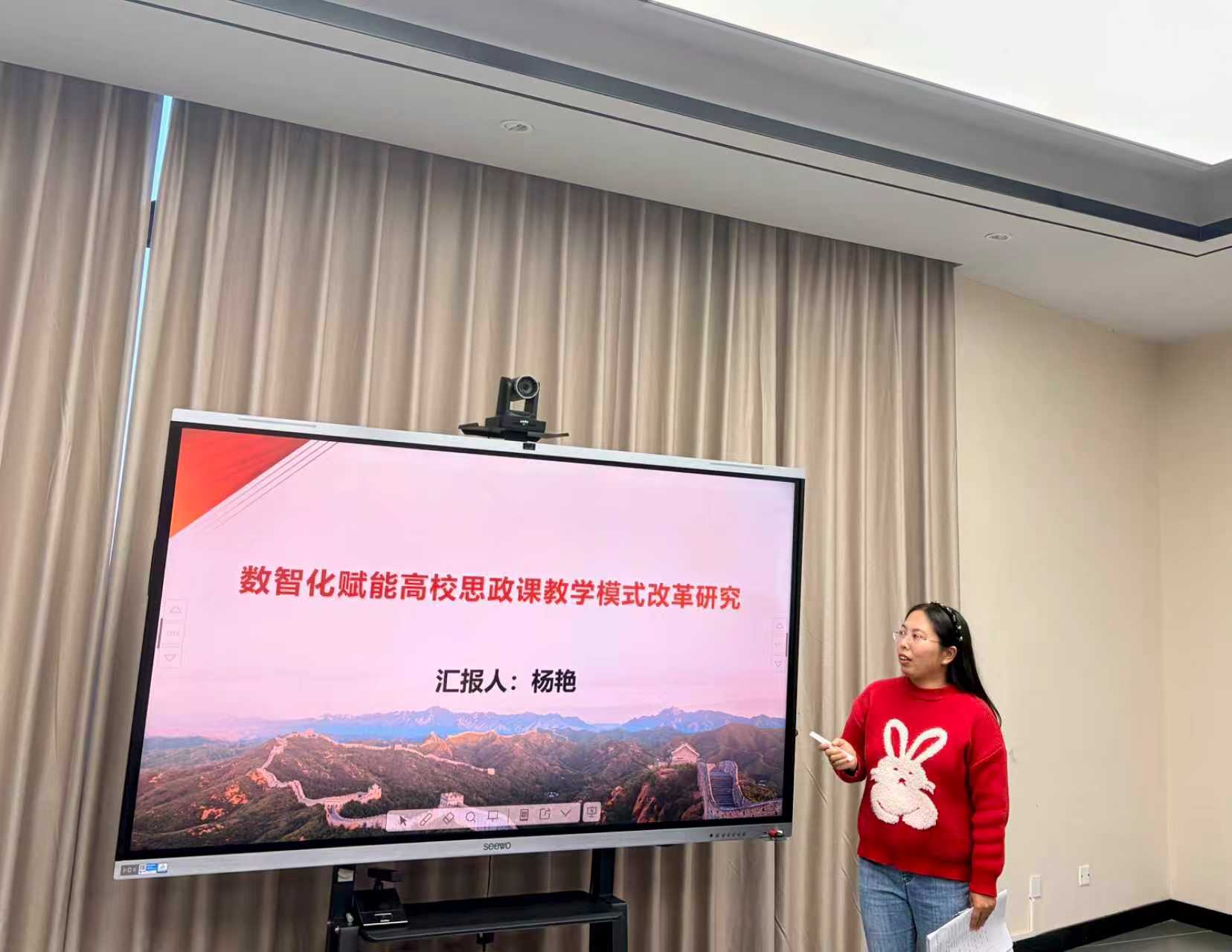 马克思主义学院本次获得立项的6个项目主持人,分别从研究背景、研究意义、研究内容、创新点、预期成果等方面进行了依次阐述。王瑞鹤老师的《数实联动·知行交融:思想政治理论课实践教学育人平台的创新探索——以“青年说大讲堂”为例》项目,旨在积极响应并深度践行《教育强国建设规划纲要》的战略部署,直面当前高校思想政治理论课实践教学中存在的关键痛点,以“青年说大讲堂”这一师生学术共同体为实体依托,通过“数实联动”与“知行交融”的双轮驱动,构建一个全方位、立体化、沉浸式的育人新场域。刘秀秀老师的《数智化赋能大中小学思政课一体化话语体系建构研究》项目,旨在借助数智化手段破解思政课一体化建设中的话语体系困境,推动思政课内涵建设、提升课堂教学吸引力、服务学校高质量发展,打造数智赋能思政课的“珠江样本”。曲成老师的《思想道德与法治》虚拟教研室,旨在丰富思政课虚拟教研的理论体系,构建“数据驱动——AI 赋能——协同创新”的教研新范式,为文科类课程虚拟教研室建设提供可借鉴的理论框架,破解思政课教学资源碎片化、实践教学时空限制、跨校教研协同不足等问题,提升教师备课效率与教学能力,增强学生课程满意度与思政素养,形成区域性思政课协同育人合力。