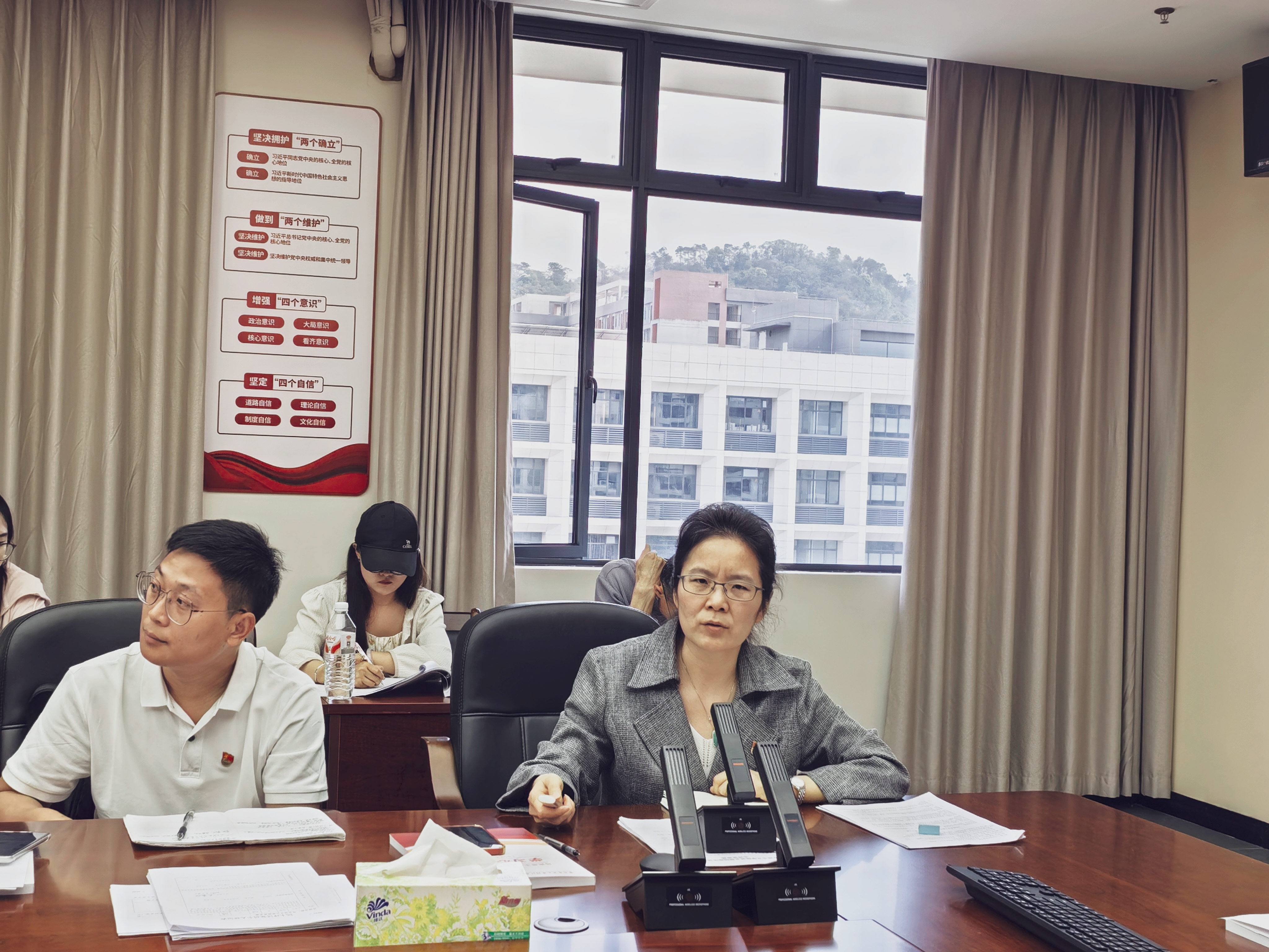 为深入学习贯彻习近平新时代中国特色社会主义思想,全面落实党的二十届四中全会精神,锲而不舍推进中央八项规定精神落地生根,持续加强作风建设常态化长效化。根据学校党委的统一部署,2026年3月18日下午,马克思主义学院党支部在1-401会议室召开2025年度组织生活会暨民主评议党员大会,常驻四会校区的7名党员教师同步通过线上腾讯会议参会。会议由党支部书记许祝主持,院长刘社欣进行专题党课讲授,全体党员教师参加此次会议。