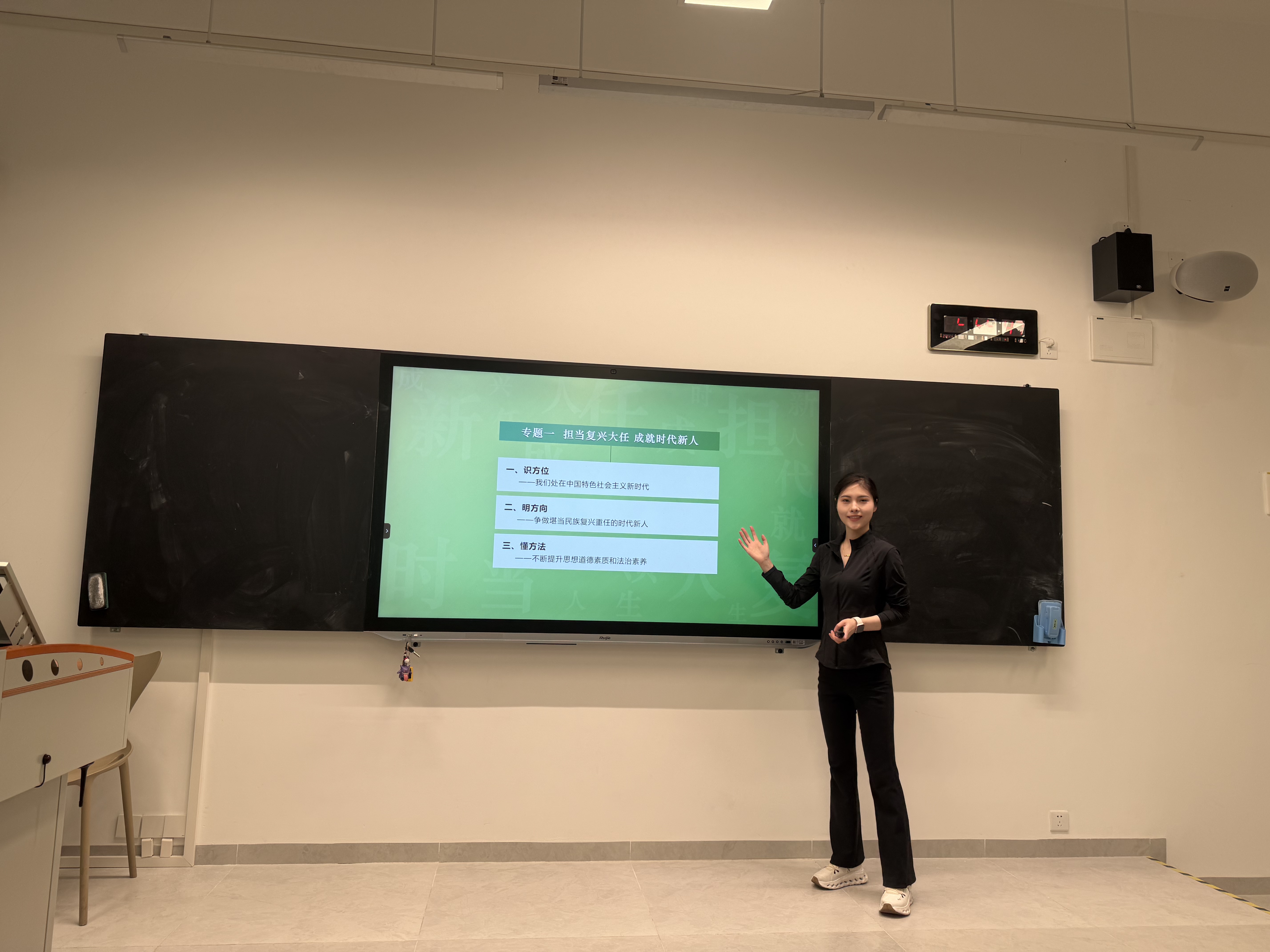 活动中,陈明明老师以“如何认识新方位?——我们处在中国特色社会主义新时代”为核心展开教学,通过解读“新时代”、感悟“新时代”、建功“新时代”三个层层递进的议题,为在场教师呈现了一堂逻辑清晰、内容鲜活的思政课。课堂上,陈老师结合时代案例阐释“新时代”的历史方位与核心内涵,引导学生从社会发展实践中感悟新时代的变革与成就,配合视频生动进行讲解,并鼓励青年学子立足时代潮头主动建功立业,教学设计贴合学生认知规律,兼具理论深度与现实温度。陈老师课堂展示结束后,黄禧祯教授、程建军教授、马丽博士和刘社欣院长依次点评,一致认为陈老师授课内容丰富,逻辑清楚,并针对性提出了包含案例调整以及更加注重课堂语言精确性的建议。